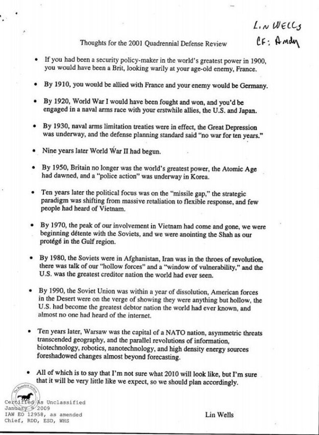 Just came across this amazing memo from Lin Wells to Rumsfeld in April 2001 on difficulty of prediction. Incredible #history #FWW #WWI #SWW #WW2 #ColdWar. I can’t believe I had never seen this before. https://t.co/uMIffbMFMz