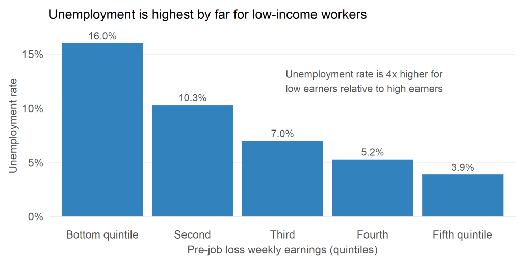 Peter Ganong (@p_ganong) Tweeted: Average earnings per current worker is misleading because, as @pascaljnoel @JoeVavra and I have shown, unemployment is highest for low-wage workers. What looks like high wages is really just high layoffs for low-wage workers https://t.co/H8xoAQeume