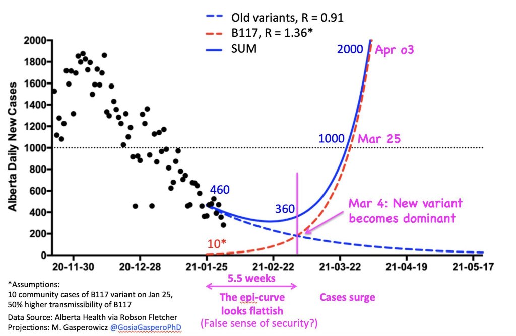 Eric Feigl-Ding (@DrEricDing) Tweeted: 10) Here is what is going to happen… currently R is ~0.9 in many places, but with the more infectious #B117, the R will jump 50% approximately. And it is inevitable (all CDC and Danish models say this) that B117 will take over as the reigning dominant variant soon—Alberta 🇨🇦 https://t.co/cBqB1BE9wT
