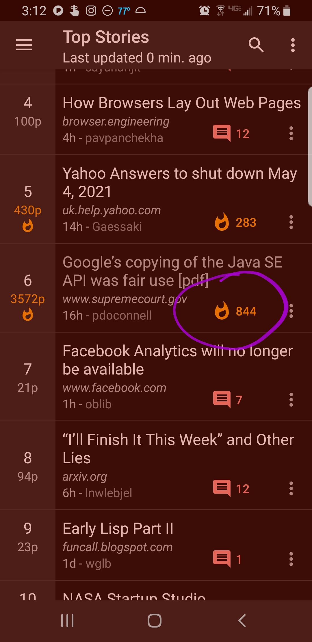 Google v. Oracle Leave a reply Big news (Hacker News). (Also, late at night, hence the blue filter.) Share this: Share on X (Opens in new window) X Share on Facebook (Opens in new window) Facebook Email a link to a friend (Opens in new window) Email Share on Mastodon (Opens in new window) Mastodon Like Loading... Related