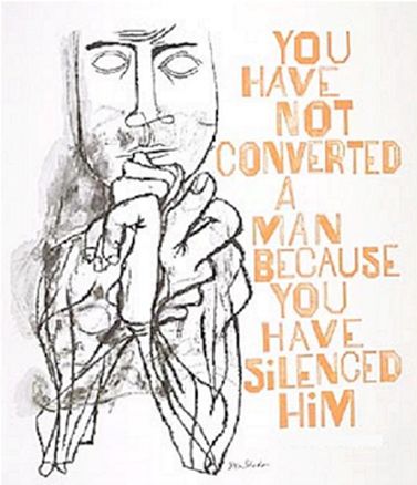 You have not converted a man because you have silenced him Leave a reply https://br.pinterest.com/pin/93942342197851282/ I want this on a t-shirt. (Original art by Ben Shahn.) Share this: Share on X (Opens in new window) X Share on Facebook (Opens in new window) Facebook Email a link to a friend (Opens in new window) Email Share on Mastodon (Opens in new window) Mastodon Like Loading... Related