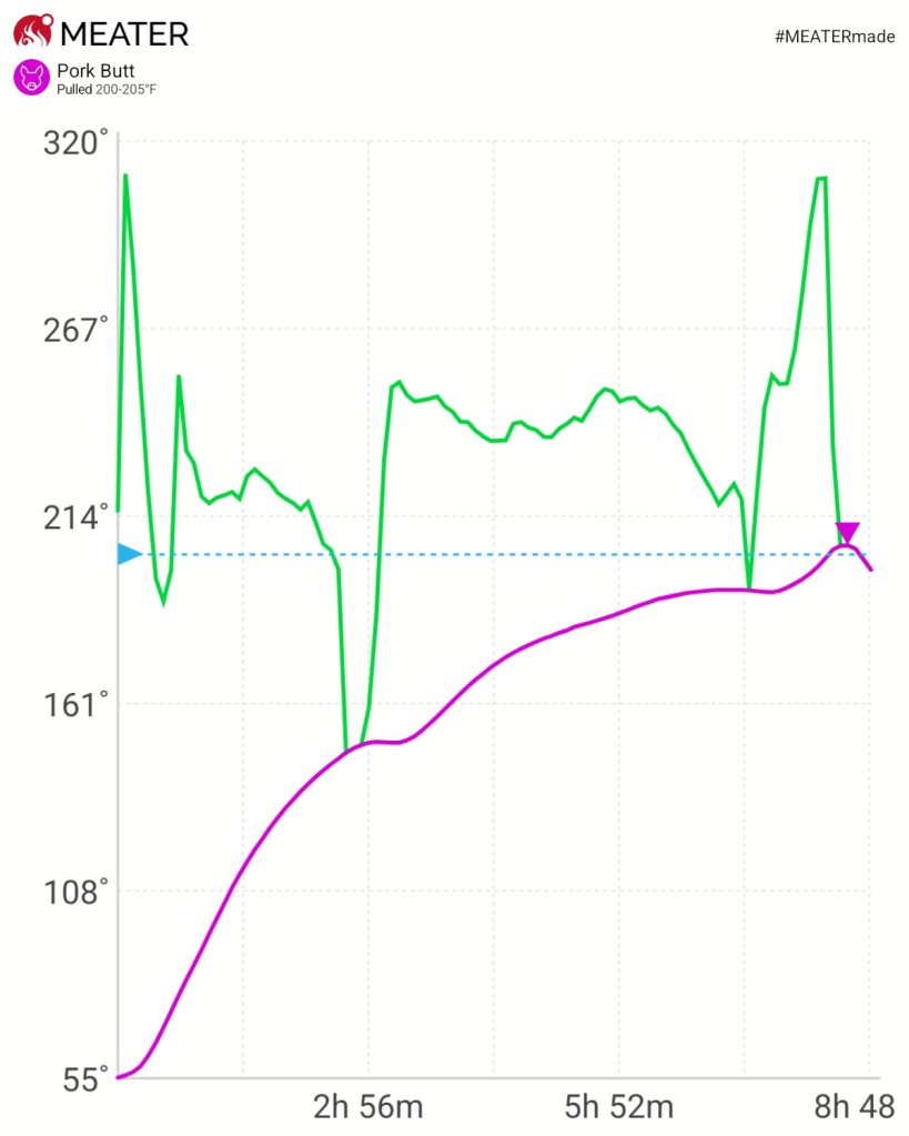 El cheapo Weber grill + half a bag of charcoal (NOT THE STUFF SOAKED WITH LIGHTER FLUID) + half a bag of hickory chips + el expensivo Bluetooth thermometer + one day of reading pulp westerns and drinking beer = truly awesome pulled pork, NC style. Seriously, that stuff just fell right apart. 5-lb pork butt.
