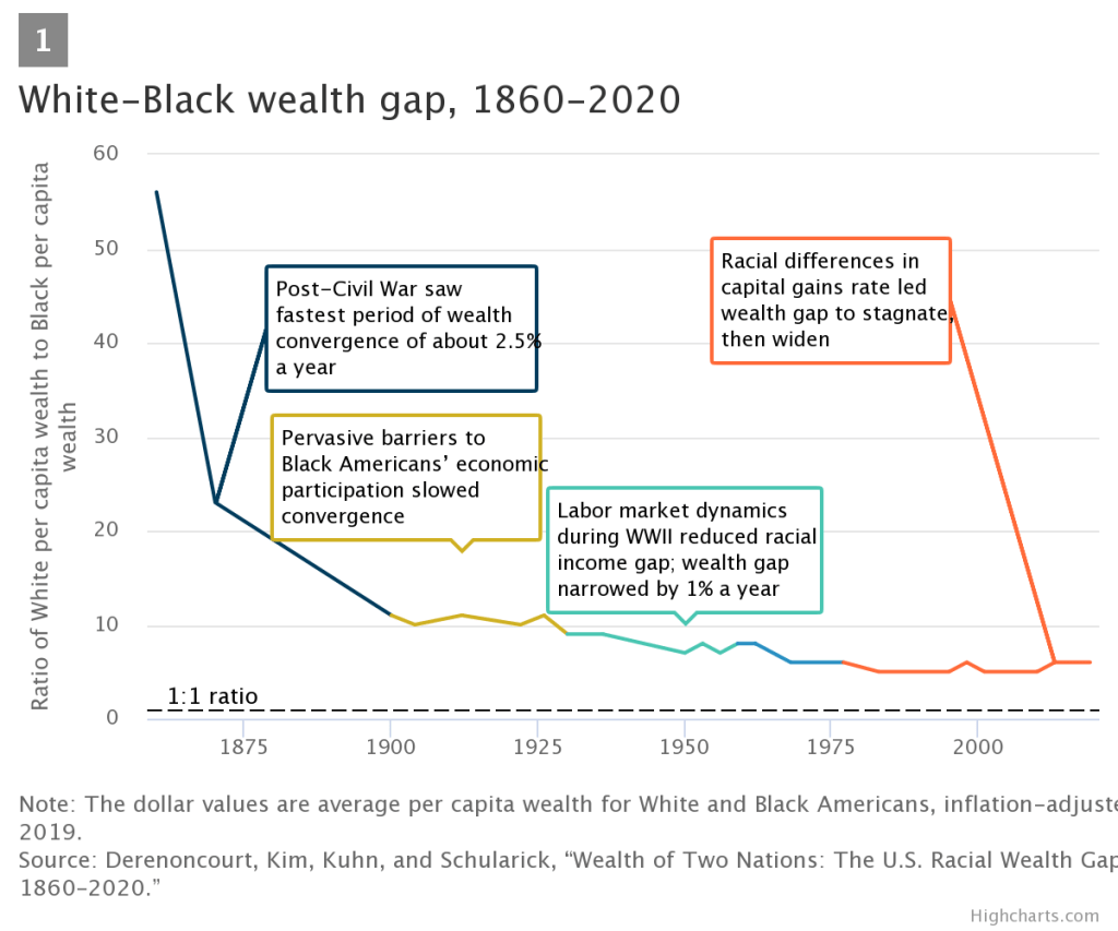 Racial wealth gap Leave a reply https://www.minneapolisfed.org/article/2022/how-the-racial-wealth-gap-has-evolved-and-why-it-persists#:~:text=It%20matters%20a%20great%20deal,13%20percent%20of%20the%20population. Related to https://herereadthis.blog/2023/03/28/why-most-americans-oppose-reparations-for-slavery-npr/ Share this: Click to share on X (Opens in new window) X Click to share on Facebook (Opens in new window) Facebook Click to email a link to a friend (Opens in new window) Email Click to share on Mastodon (Opens in new window) Mastodon Like Loading... Related
