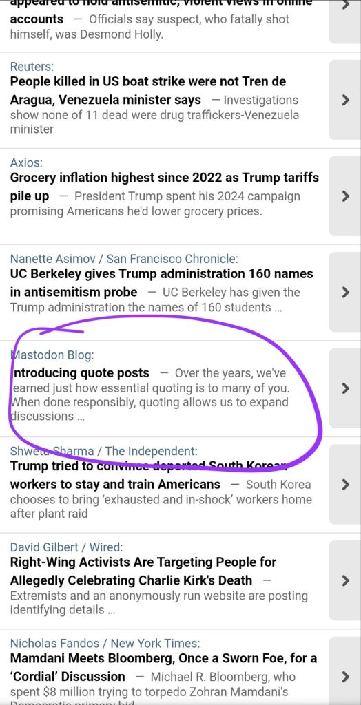 Wow, mastodon quote toots showed up on memeorandum’s front page Leave a reply Share this: Click to share on X (Opens in new window) X Click to share on Facebook (Opens in new window) Facebook Click to email a link to a friend (Opens in new window) Email Click to share on Mastodon (Opens in new window) Mastodon Like Loading... Related
